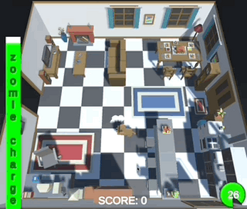 To charge your zoomie energy, run around the apartment while not hitting into anything. When your zoomie meter is full, press 'z' to zoom, and then smash into as much stuff as you can for points. Don't get stuck lol